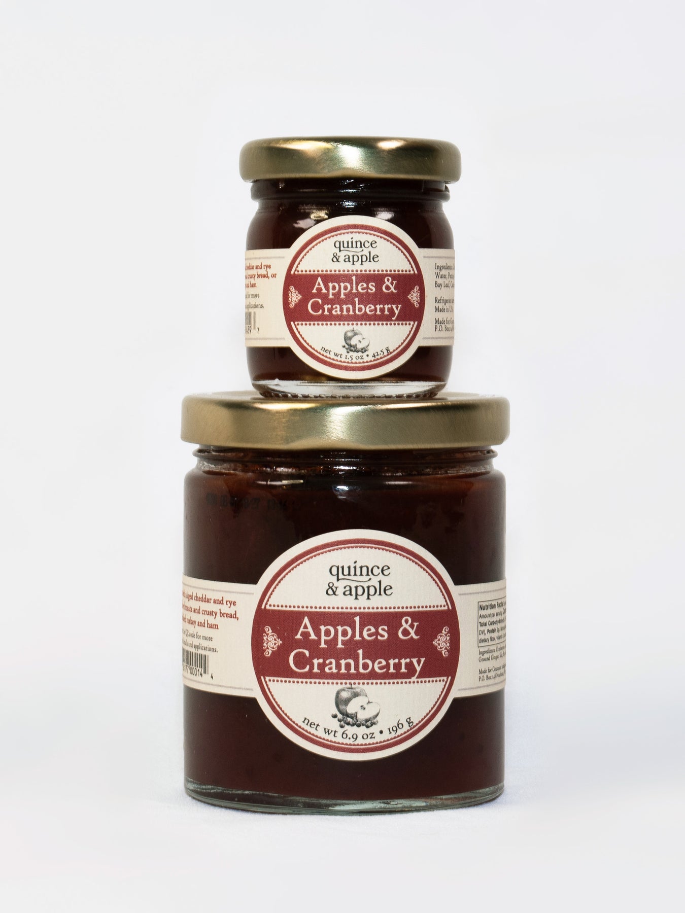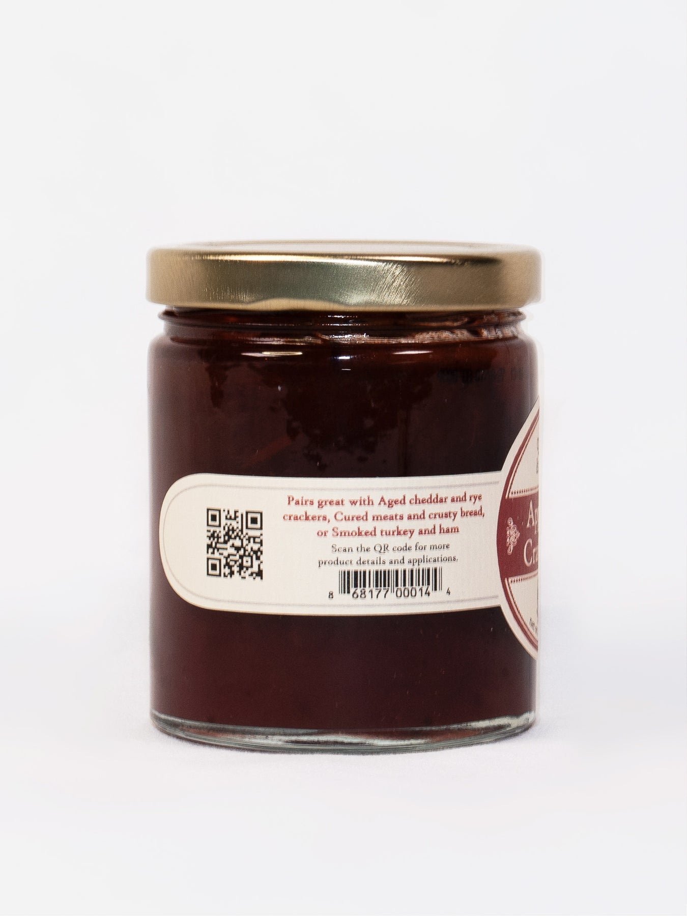 This preserve combines apples, cranberries, honey, orange zest, ginger, and bay leaves for a perfect blend of sweet and tart. It pairs superbly with meats, and cheeses as well as sweet and savory dishes.