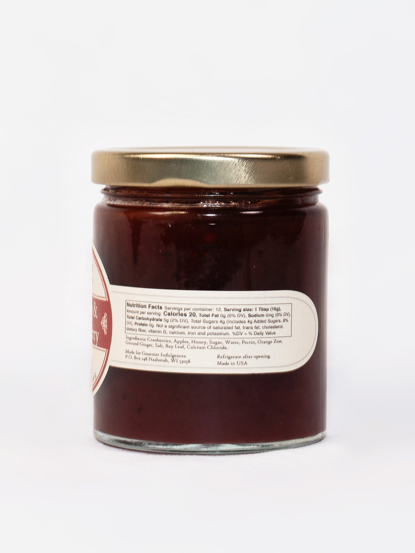 Ingredients: Cranberries, Apples, Honey, Cane Sugar, Ginger, Orange Zest, Salt and Bay Leaves
